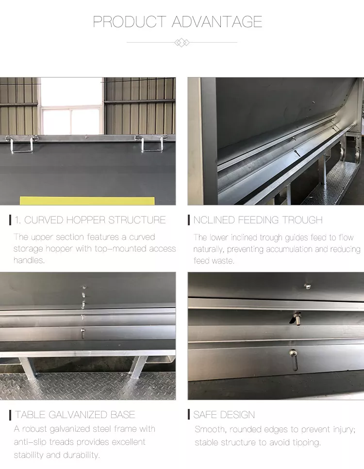 2. ຮ່ອງການໃຫ້ອາຫານທີ່ມີທ່າທາງ: ຮ່ອງການໃຫ້ອາຫານທີ່ມີທ່າທາງຕ່ຳຈະນຳທາງໃຫ້ອາຫານໄຫຼຕາມທຳມະຊາດ, ປ້ອງກັນການສະສົມ ແລະ ຫຼຸດຜ່ອນສິ່ງເສດເຫຼືອຂອງອາຫານ.