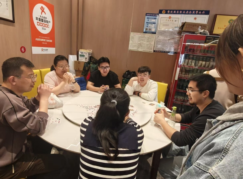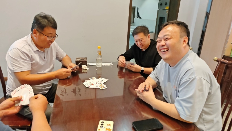 ຫຼັງຈາກພັກຜ່ອນສັ້ນໆໃນຕອນທ່ຽງ, ເວລາ 12:30 ໂມງ, ພວກເຮົາຍ້າຍໄປໂຮງແຮມແລະເລີ່ມການແຂ່ງຂັນ Guandan ທີ່ຫນ້າສົນໃຈ. ໃນຖານະເປັນໂຄງການສ້າງທີມງານທີ່ຮັກແພງຂອງທຸກຄົນ, Guandan ບໍ່ພຽງແຕ່ທົດສອບແນວຄິດຢ່າງມີເຫດຜົນສ່ວນບຸກຄົນ, ແຕ່ຍັງເອົາໃຈໃສ່ກັບການຮ່ວມມື tacit ລະຫວ່າງຄູ່ຮ່ວມງານ - "ບັດທີ່ດີບໍ່ໄດ້ແຂ່ງຂັນໃນປັດຈຸບັນ, ແລະຄວາມເຂົ້າໃຈ tacit ຄູ່ຮ່ວມງານແມ່ນມີຄວາມສໍາຄັນຫຼາຍກ່ວາວິລະຊົນສ່ວນບຸກຄົນ", ເຊິ່ງແມ່ນແທ້ຄວາມສໍາຄັນຂອງການສ້າງທີມງານ Guandan.