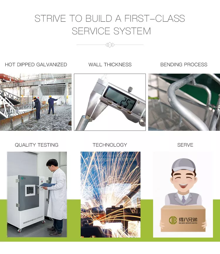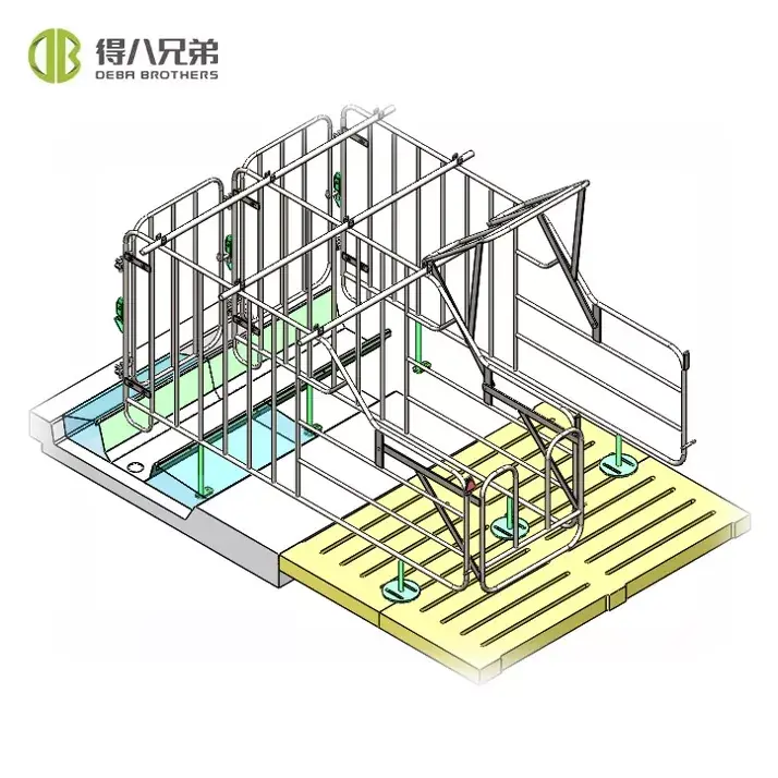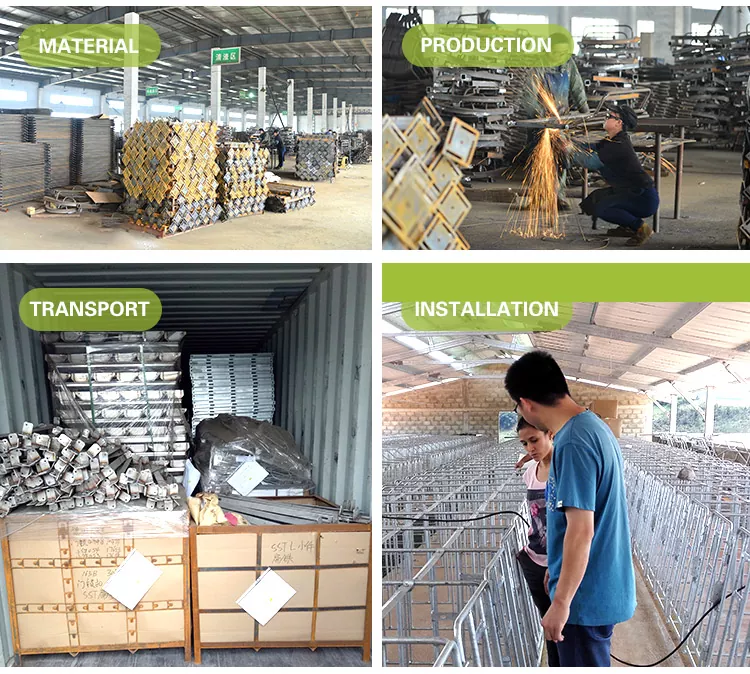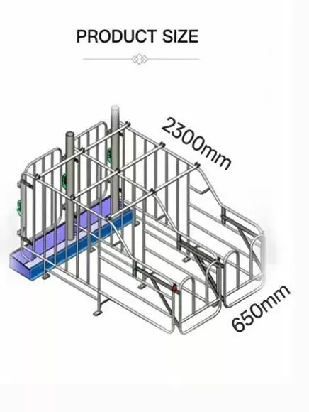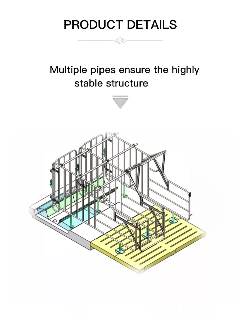 1.Secure ປະຕູ locking ດ້ານຫນ້າທີ່ມີ latch ທີ່ເຊື່ອຖືໄດ້ປ້ອງກັນບໍ່ໃຫ້ sow escape, ມີຂອບໂລຫະມົນເພື່ອຫຼີກເວັ້ນການບາດເຈັບສັດ.